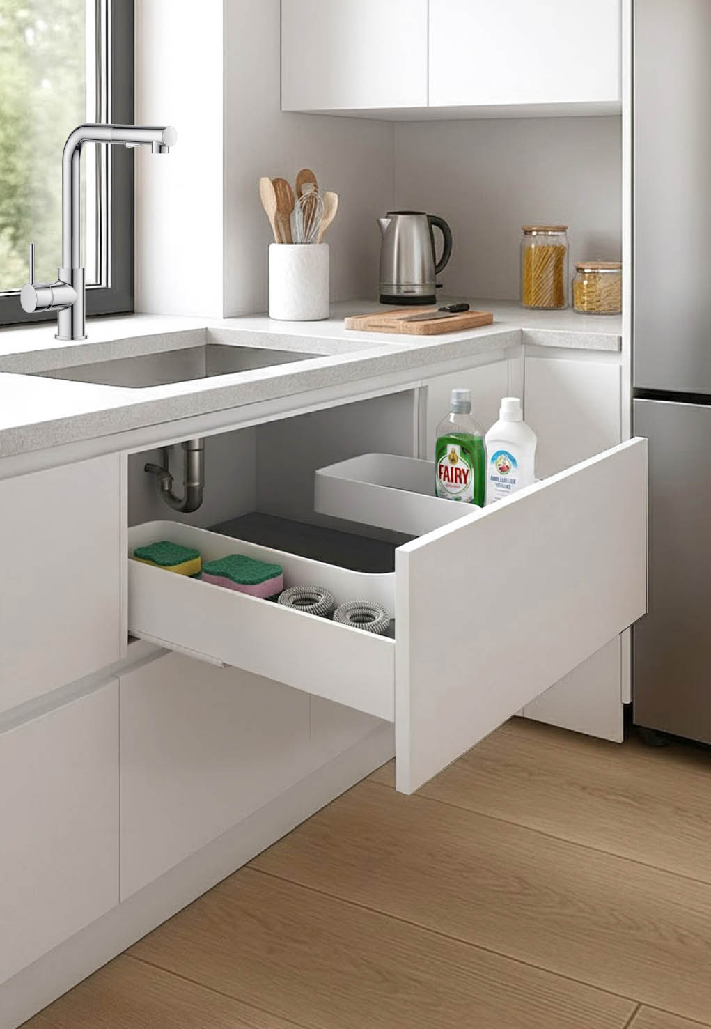 Diseño sencillo pero efectivo, para encajar perfectamente debajo del fregadero de tu cocina.