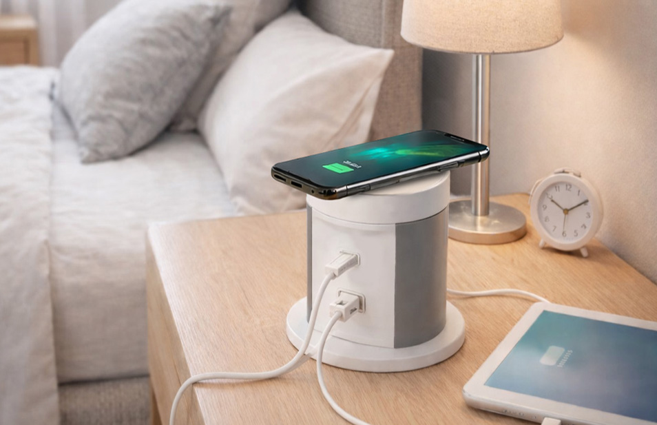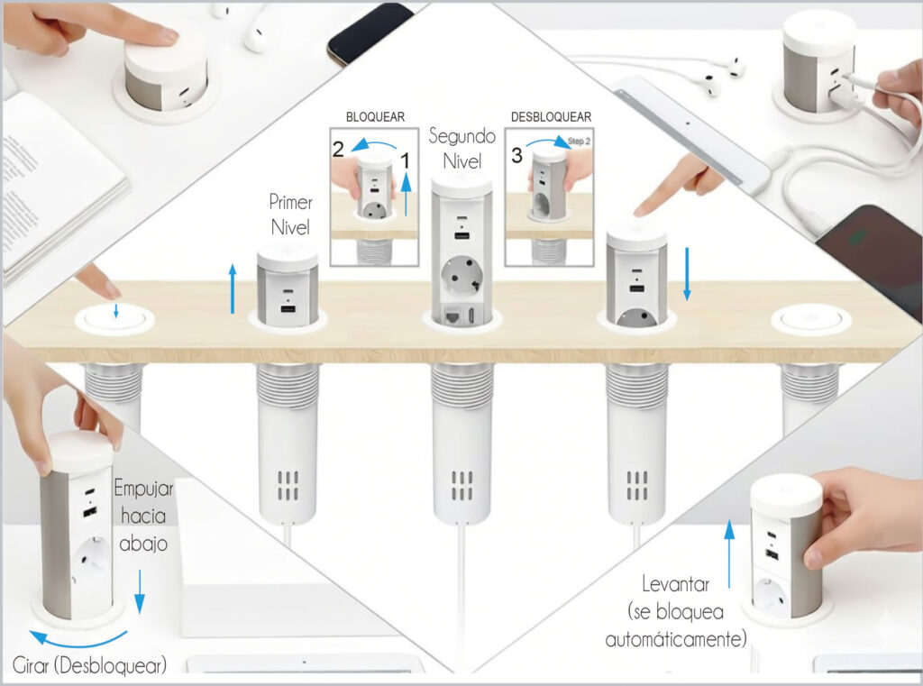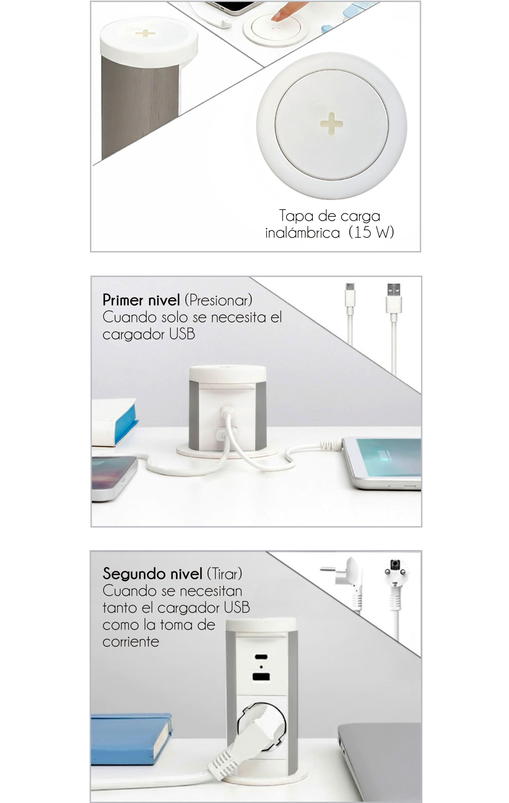 • /TORRE DE ENCHUFES OCULTA – Con Carga Inalámbrica